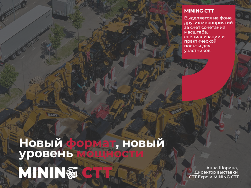 Уже с 26 по 29 мая в рамках EXPO мы запускаем первую международную выставку MINING CTT – самостоятельный проект, созданный в ответ на реальные запросы горнодобывающей отрасли.